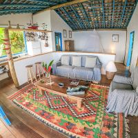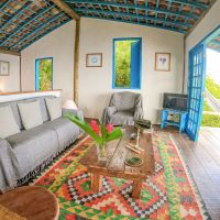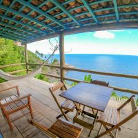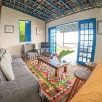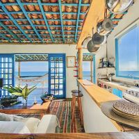 A casa tem uma vista privilegiada do mar. Perfeita para curtir o pôr do sol e brindar o amor degustando um bom vinho.