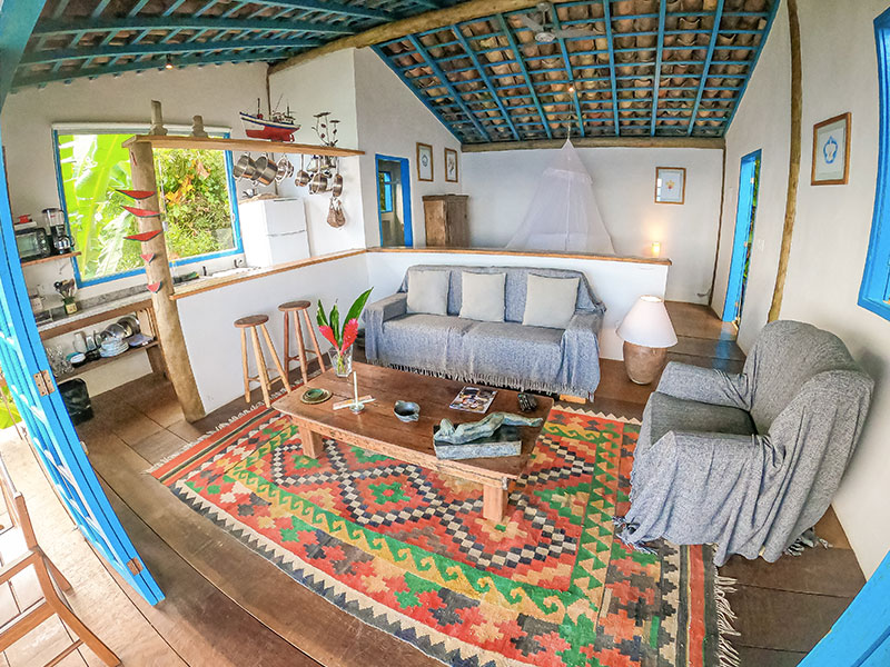 A casa tem uma vista privilegiada do mar. Perfeita para curtir o pôr do sol e brindar o amor degustando um bom vinho.